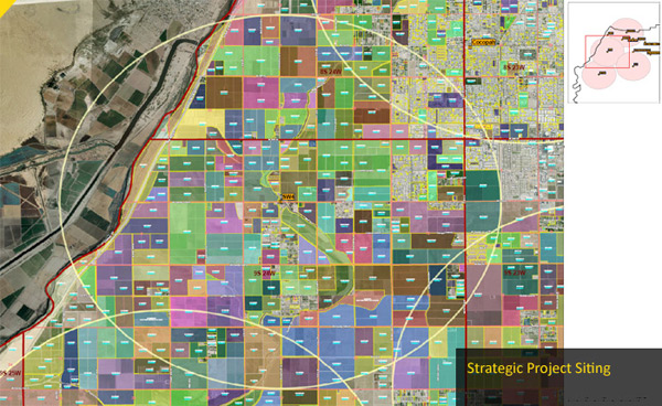Arizona is a solar state – in every sense of the term. For utility scale solar development the trend is toward relatively smaller, more geographically and transmission diverse facilities. There are very good siting options in Arizona and neighboring states for solar projects with capacities from a few megawatts to several hundred should there be effective demand. I have sourced a number of utility scale solar sites from 20MW to 290MW capacities.